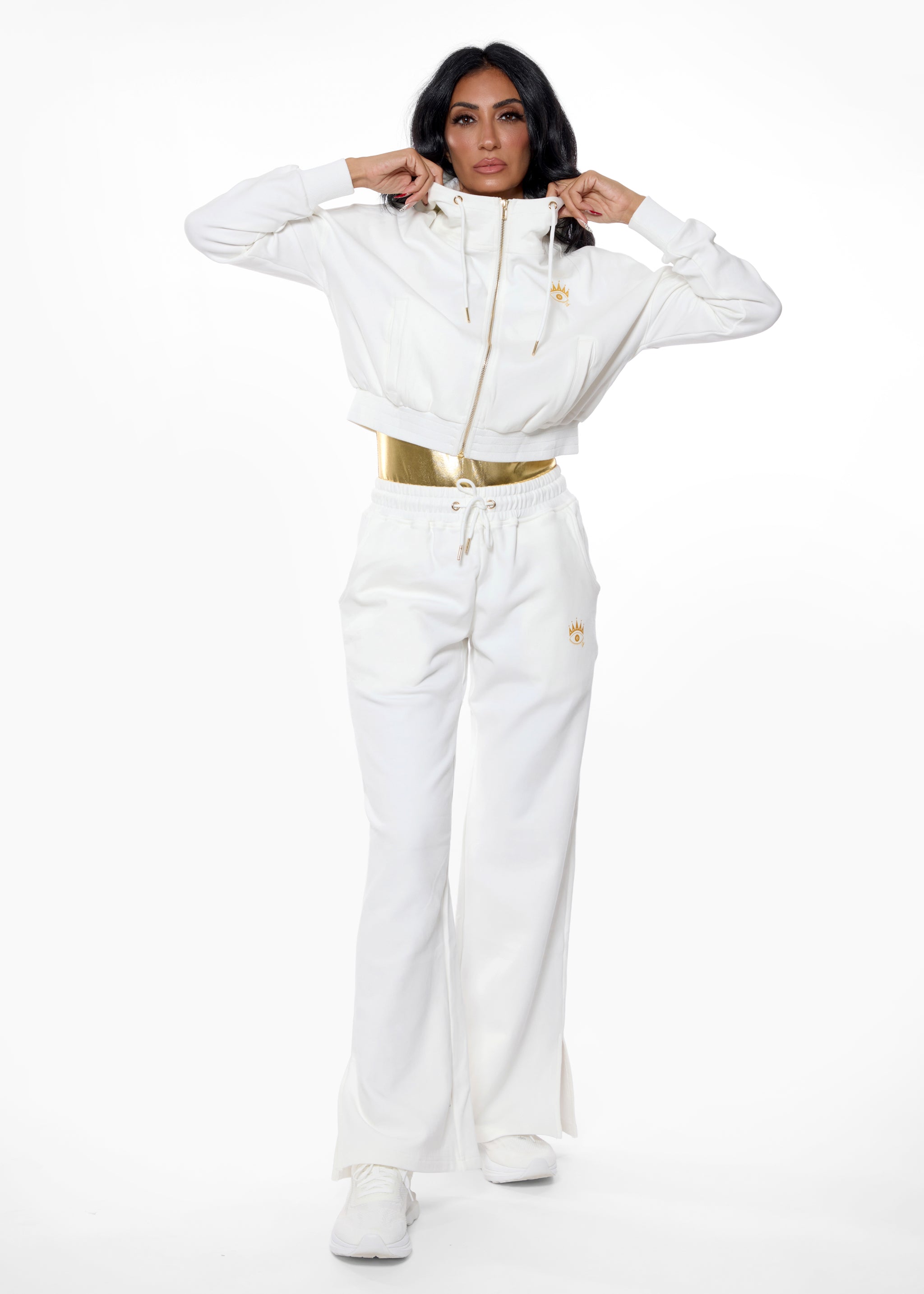 The ROMi Eye Hoodie brings effortless elegance to everyday comfort. Crafted from an ultra-soft, premium-weight cotton blend, this hoodie features a beautifully structured silhouette with a cinched waistband for a flattering, tailored look. Gold hardware and the signature crowned evil-eye emblem add a touch of luxury, transforming a classic staple into a refined fashion statement.