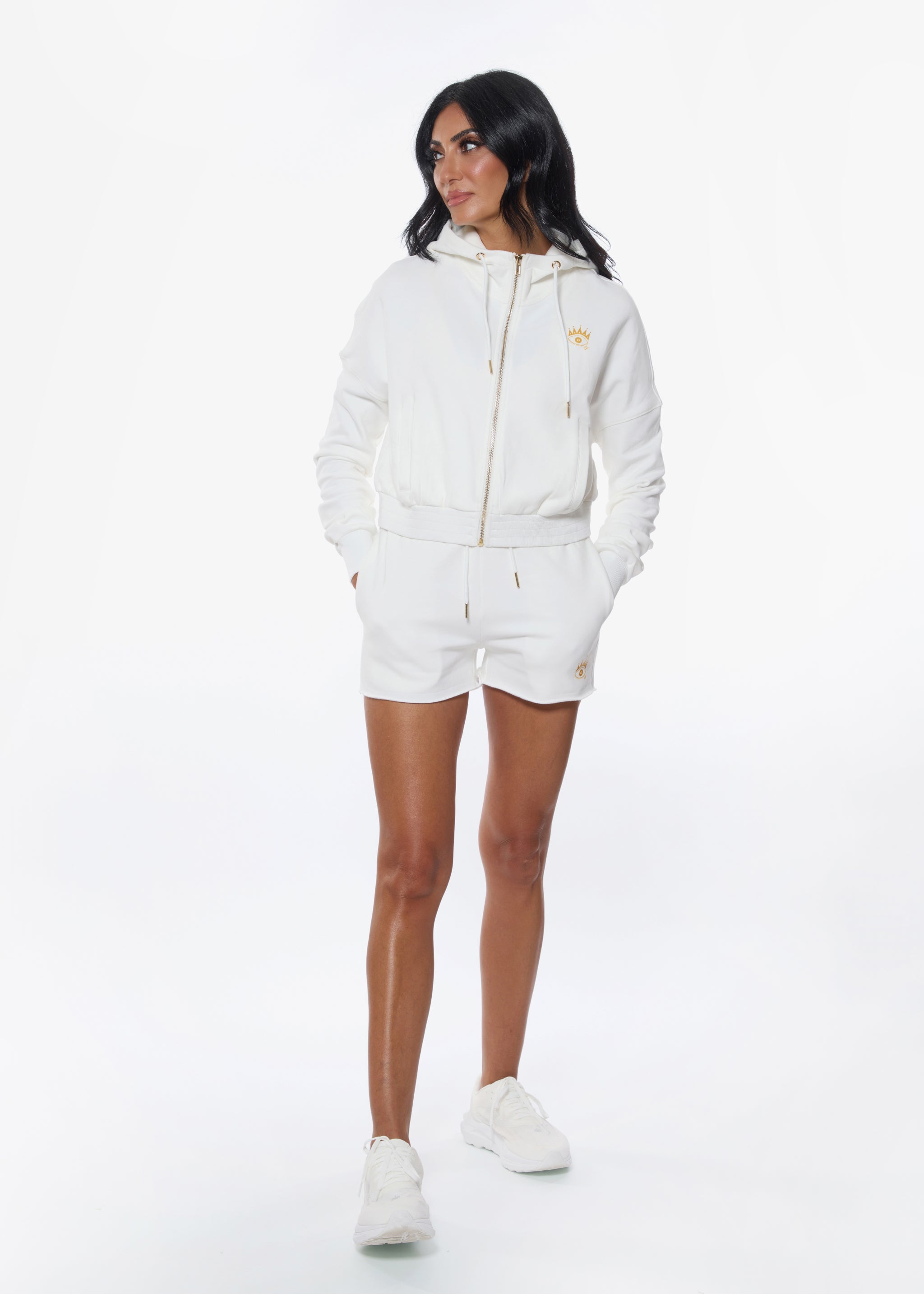 Meet the ROMi Eye Shorts, your new go-to for elevated loungewear. Designed in a buttery-soft, premium cotton blend, these shorts offer a relaxed yet refined fit with a smooth elastic waistband for all-day comfort. Gold detailing and the signature crowned evil-eye emblem bring a polished, high-fashion touch to this easy silhouette.